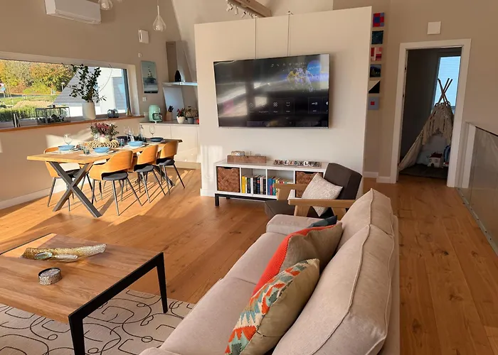 Ferienhaus Seeidylle Am Moehnesee - Designhaus Mit Viel Platz Fuer 6 Personen est équipée d'équipements indépendants, notamment d'une cuisine complète et d'un coin repas pour le plaisir des clients. Il y a aussi une cafétière/théière électrique, un réfrigérateur et de la verrerie disponibles dans la cuisine. Vous pourrez dîner à Haus Griese, qui se trouve à 14 minutes de marche. L'aéroport de Dortmund est à 45 km des logements Ferienhaus Seeidylle Am Moehnesee - Designhaus Mit Viel Platz Fuer 6 Personen, et l'arrêt de bus Schnapp's Hof est dans une zone de 400 mètres.